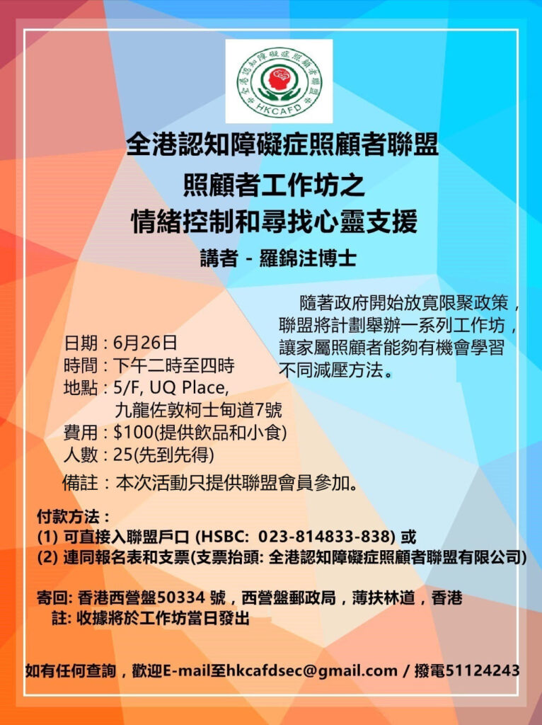照顧者工作坊之情緒擯制和尋找心靈支援