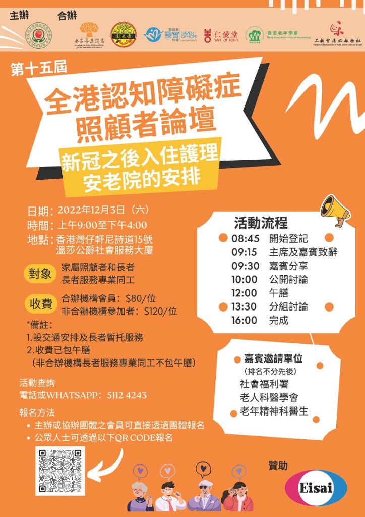 第十五屆全港認知障礙症照顧者論壇 October 8, 2022 網站管理員 活動花絮相片 To see the full size images, you need to enable javascript in your browser.